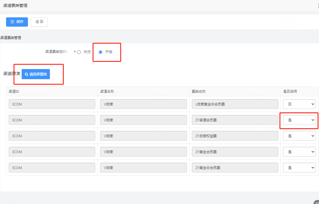 渠道票类管理:用于自营渠道的会员票类定价,所以请务必确保只给自营渠道使用!